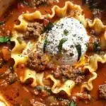 Mouthwatering One Pot Lasagna Soup is a delightful blend of classic lasagna flavors, but in a warm, comforting soup form. It is easy to make, requires minimal cleanup, and is perfect for busy weeknights or cozy weekends. This recipe gives you all the great taste of lasagna, including cheesy goodness and hearty meat, without the hassle of layering pasta. Plus, it’s a great way to sneak in some veggies like spinach.
