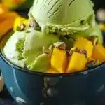 Pistachio Mango Ice Cream is a lovely balance of tropical fruit and rich, nutty depth. It’s approachable for home cooks who want an impressive dessert without specialty equipment, yet it rewards attention to detail — picking the ripest mangoes, toasting pistachios, and handling the cream gently all make a noticeable difference. Whether you serve it in cones for kids or as an elegant plated dessert for guests, this recipe is a dependable, crowd-pleasing favorite.