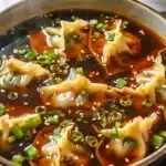 A heartwarming potsticker soup combining tender dumplings, savory broth, and fresh vegetables for a cozy meal.