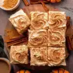 - Spread the cream cheese frosting over the cooled cake. Serve and enjoy the fall flavors!