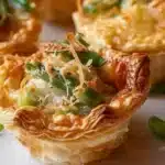 These bite-sized green bean casserole cups take everything you love about the classic holiday side — garlicky cream, nutty Parmesan, and crunchy onions — and shrink it into a perfectly portable appetizer. Light puff pastry shells hold a creamy green bean filling that bakes up golden and irresistible; they’re great for parties because they’re easy to eat and even easier to love. For a complete run-through and printable version, check the full recipe page.