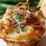 - Carefully fill each pastry cup with the green bean mixture and top with additional Parmesan and fried onions for extra crunch and flavor.