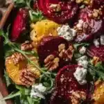If you want more inspiration or similar takes on beet salads, check out this version at Beet Salad with Goat Cheese and Balsamic Recipe – Love and Lemons for a slightly different spin. For a honey Dijon twist with walnuts and extra chef-y vibes, take a peek at Roasted Beet Salad with Goat Cheese, Walnuts & Honey-Dijon.