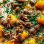 - Add vegetable broth and roasted squashes, simmer for 15-20 minutes.