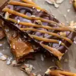 Serve the salted caramel pretzel bark in bite-sized pieces. Itโs great for parties or casual gatherings. You can place it in a decorative bowl or on a platter. This sweet treat pairs well with coffee, tea, or even a glass of milk, making it perfect for snack time or dessert.