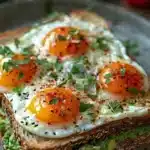 - Place the cooked eggs on top of the avocado spread.