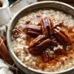A comforting slow cooker oatmeal infused with maple and brown sugar, perfect for effortless mornings.