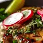 Tender pork chops slow-cooked in a tangy, smoky salsa verde sauce, perfect for tacos or rice bowls.