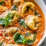 This soup feels special because it takes humble, familiar pantry ingredients and turns them into something homey and elegant at once. The cheese-filled tortellini adds instant heartiness without extra steps; the tomatoes and basil deliver classic Italian comfort, and the spinach tucks in a bright, healthy note. It’s the sort of recipe you can start in the morning and come home to a dinner that smells like love.