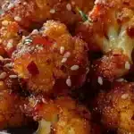Crispy and sweet cauliflower bites drizzled with a spicy honey glaze, perfect for appetizers or snacks.