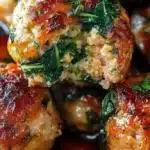 Flavor-packed meatballs with a cheesy mozzarella center, combining savory ground meat, spinach, and garlic.
