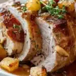 An elegant roast that combines crispy bacon, sweet apples, and fragrant herbs, finished with a glossy apple-bourbon gravy.