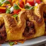 Why is this taco ring so amazing? First, it is basically a party in pastry form. You get crunchy edges, gooey cheese, and savory taco meat all in one sliceable ring. It is idiot proof enough that even if you get distracted scrolling through your phone, it will still come out golden and delicious.
