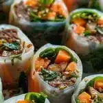 If you’re tired of the same old sandwiches and heavy mains, this recipe is perfect because it delivers big Thai flavor in a fresh, handheld package that’s fun to assemble and even more fun to eat. The rolls are portable, customizable, and ready in about 20–30 minutes, solving dinner boredom while keeping things light and satisfying.