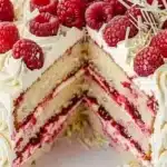 - Garnish (Optional): For an elegant touch, garnish the cake with fresh raspberries and white chocolate shavings.