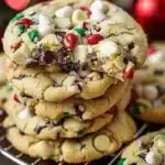 Delightful chocolate chip cookies with a festive twist of crushed peppermint candies, perfect for the winter season.